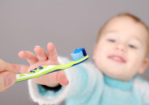 When your child’s teeth begin to come in, you will need to switch from a cloth to a baby toothbrush. Find one that has a grip big enough for your hand, but a head that is small enough to maneuver easily in your infant’s mouth.